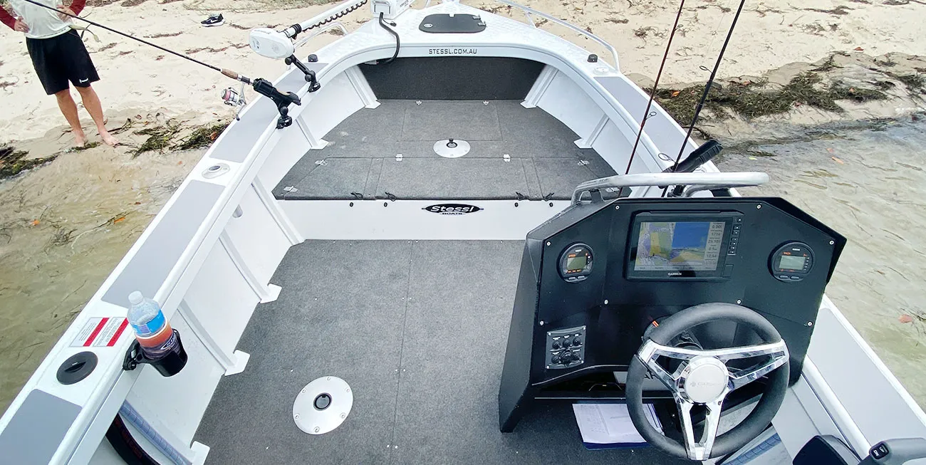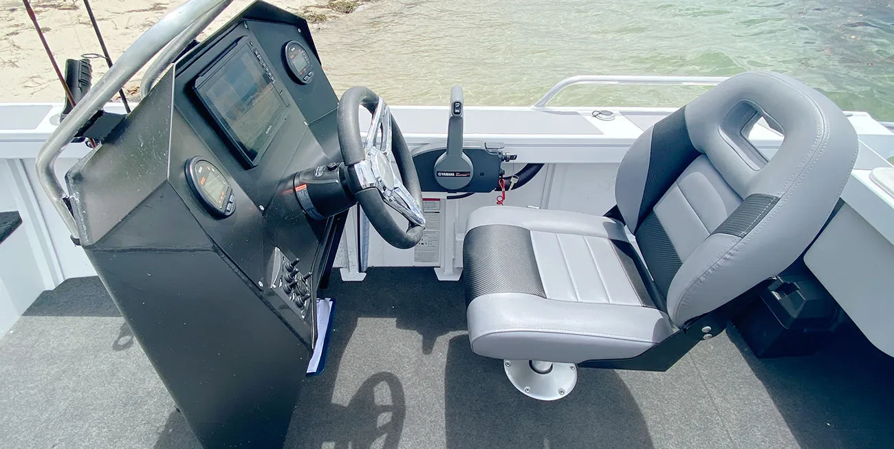 Packed with all the great features that come in the Apache Pro series of Steel boats with the added benefit of a stylish side console and sports steering wheel the Apache Pro Side Console gives you the opportunity to choose a higher horsepower motor and provides a home for your electronics behind a raked Perspex screen.