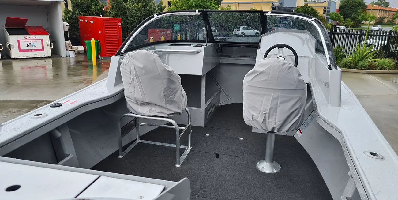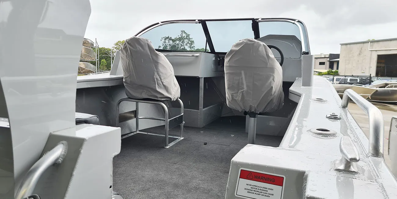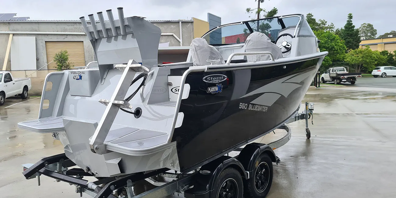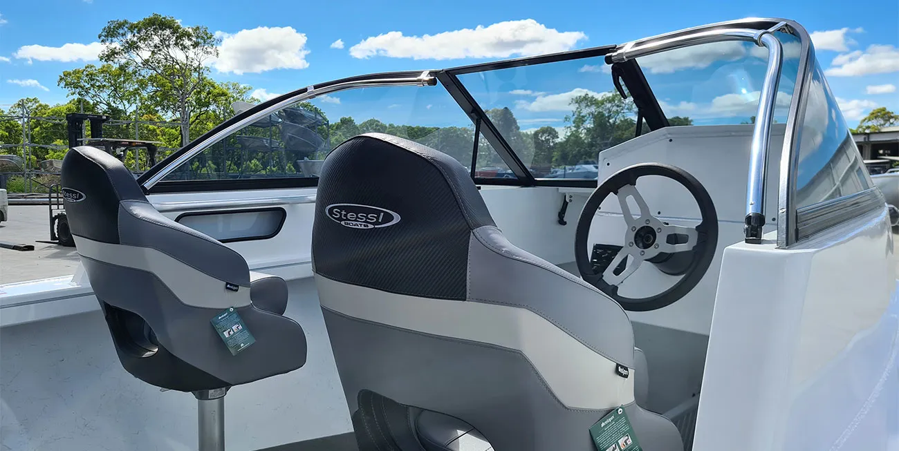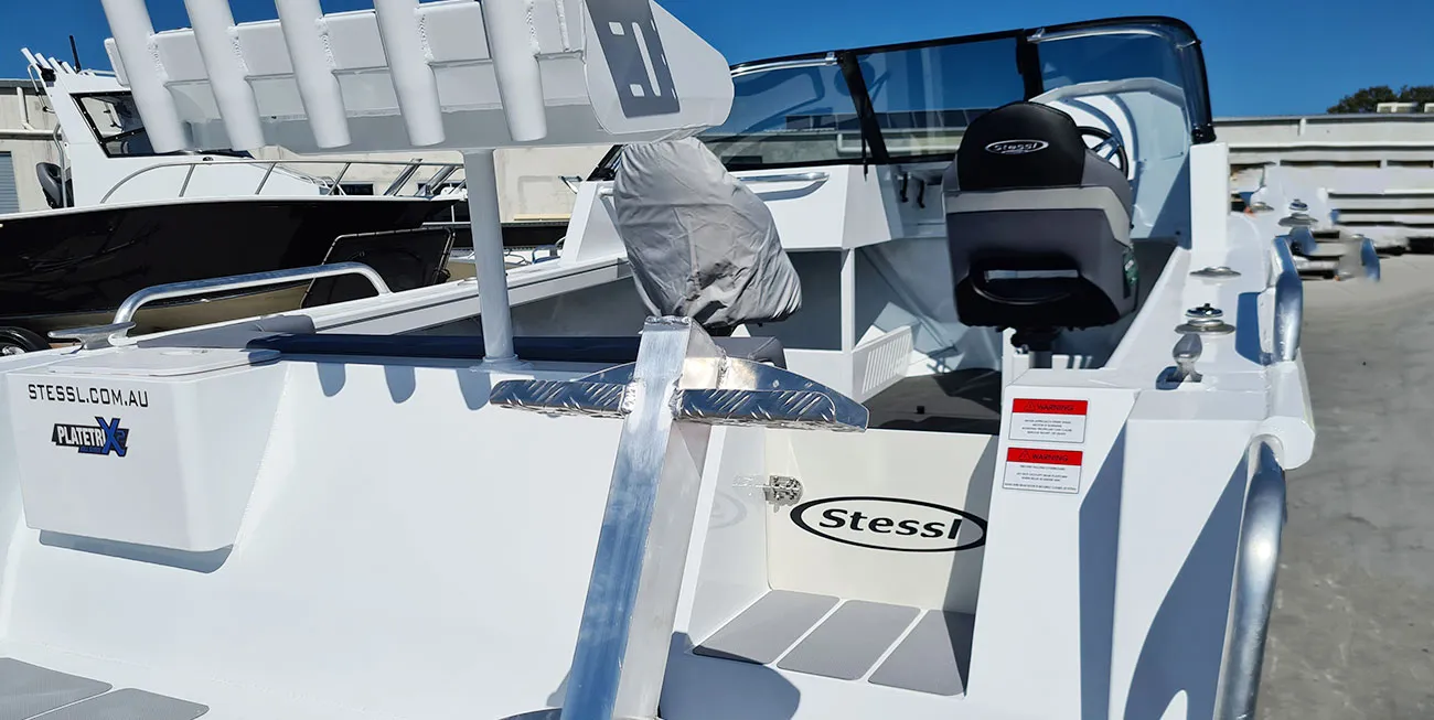 The Stessl Bluewater runabout with its fully welded aluminium raised deck is set up to handle all inland and coastal waters. The ergonomic helm area complete with high set deluxe bolster seats has great all round vision and the Bluewater can be operated comfortably while seated or standing.