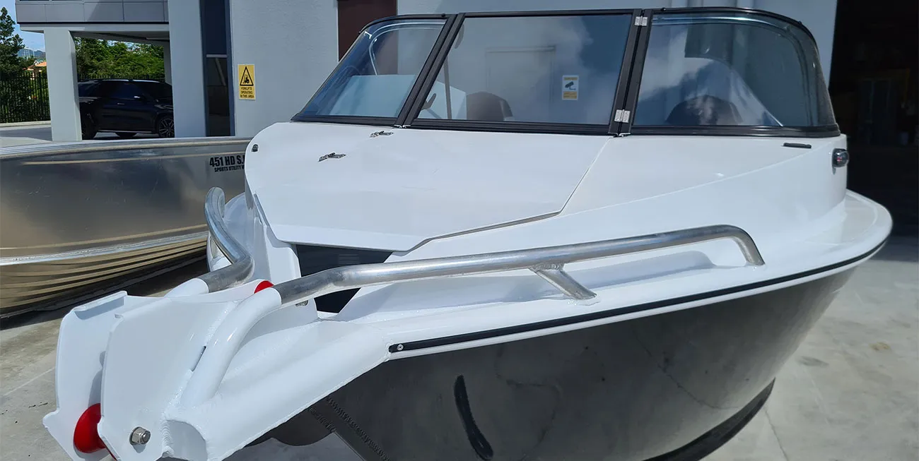 The wrap around screen offers protection from the wind while still providing access to the bow with an opening walkthrough door.