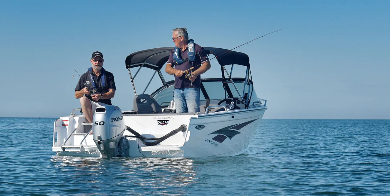 Easy to drive with a familiar helm position tucked behind a windscreen the Sportsman runabout can be set up as a comfortable fishing platform for those winter days with a couple of rods hanging out the back chasing whiting or loaded up with a picnic basket for a day out with the family.