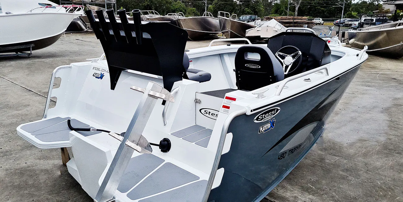 The solidly built foam filled Platerix hull, which has full height floor to hull frames and bulkheads is stable at rest and exceptionally quiet when underway. There is plenty of storage under the large front casting deck